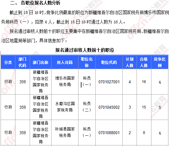 【截至15日16時】2017國考報名新疆185人過審 475個職位無人報考