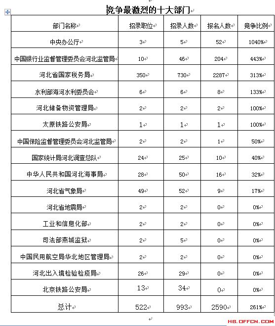 為幫助廣大考生更清晰的了解今日?qǐng)?bào)名情況,河北中公網(wǎng)校整理了審核通過(guò)人數(shù)前十位的部門以及競(jìng)爭(zhēng)比例最激烈的十大部門,供廣大考生參考: