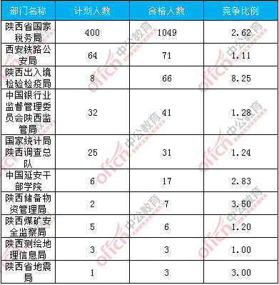 為幫助廣大考生更清晰的了解今日報名情況,陜西中公網(wǎng)校整理了審核通過人數(shù)前幾位的部門以及競爭比例最激烈的幾大部門,供廣大考生參考: