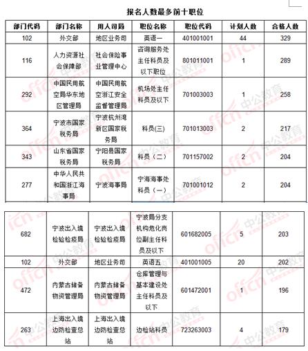 外交部地區(qū)業(yè)務(wù)司英語(yǔ)一(職位代碼401001001)這一職位此時(shí)仍穩(wěn)坐報(bào)名人數(shù)人氣榜單首位,目前已經(jīng)有329人報(bào)名,與昨日此時(shí)相比增加了262人,而亞軍、季軍位置均發(fā)生顛覆性變化,人力資源社會(huì)社會(huì)保險(xiǎn)事業(yè)管理咨詢服務(wù)處主任科(職位代碼401001001)取代上海出入境邊防檢查總站邊檢站科員躍居亞軍,中國(guó)民用航空局華東地區(qū)管理局中國(guó)民用航空浙江安全監(jiān)督管理局機(jī)場(chǎng)處主任科員及以下這一職位取代外交部地區(qū)業(yè)務(wù)司英語(yǔ)五,上升至第三名,說(shuō)明人氣職位榜風(fēng)云變幻比較大,未來(lái)到底哪個(gè)職位能夠成為“人氣之星”,我們拭目以待。