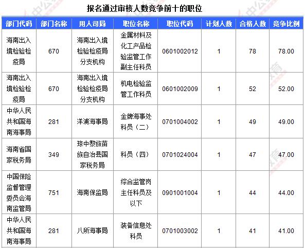 【截至17日16時(shí)】2017國(guó)考報(bào)名海南1276人過審 最熱職位已達(dá)78:1