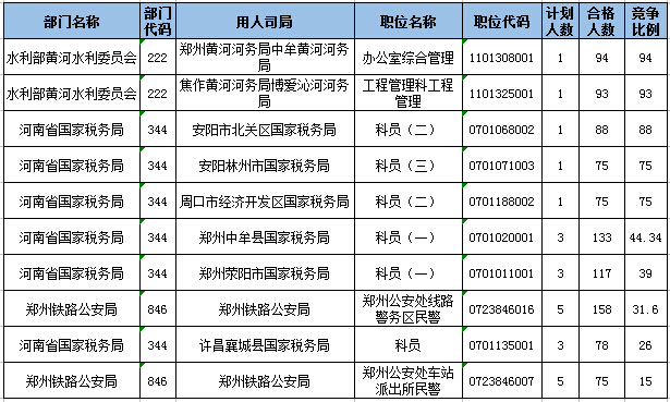 截止17日16時(shí),招錄比例的職位為鄭州黃河河務(wù)局中牟黃河河務(wù)局辦公室綜合管理一職,招錄1人,截止17日16時(shí)通過(guò)人數(shù)為94人。