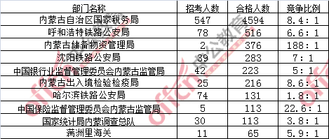 為幫助廣大考生更清晰的了解今日報(bào)名情況,內(nèi)蒙古中公網(wǎng)校整理了審核通過人數(shù)前十位的部門,供廣大考生參考: