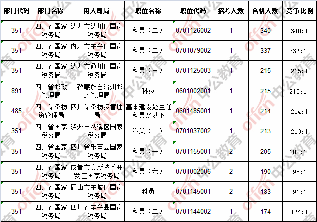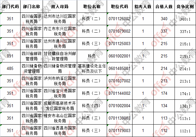 首日報名通過審核人數(shù)前十的職位主要集四川省國家稅務(wù)局等部門,具體信息如下: