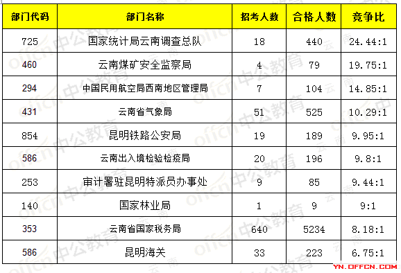 競爭最激烈前十部門