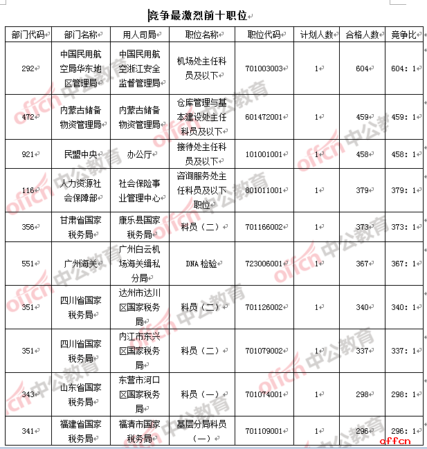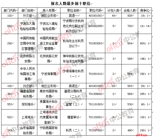 【截至18日16時】2017國考報名最熱職位競爭比達605:1