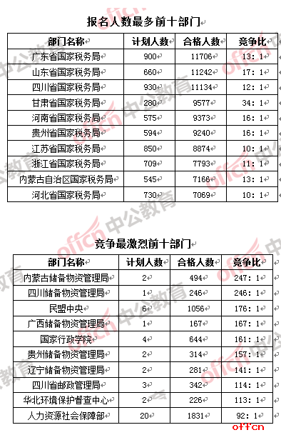從部門的競爭比上來看,穩(wěn)坐前兩個(gè)位置的部門依舊“巋然不動(dòng)”,競爭比在246:1以上。內(nèi)蒙古物管局依舊在最熱部門中“”,但與去年同期最熱部門的257:1相比,今年的競爭會(huì)相對(duì)減弱。民盟中央后來居上,前進(jìn)了7個(gè)名次,中公網(wǎng)校專家預(yù)計(jì),此職位仍將吸引更多的報(bào)考者。華北環(huán)境保護(hù)督查中心“擠入”前十榜單。