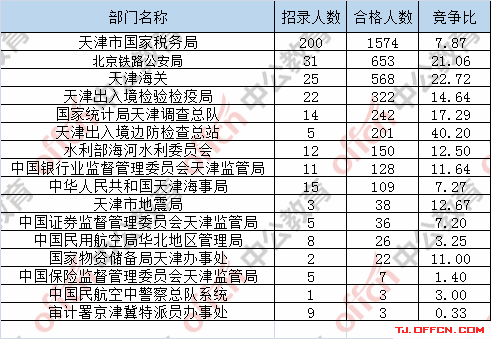 為幫助廣大考生更清晰的了解今日?qǐng)?bào)名情況,天津中公網(wǎng)校整理了審核通過(guò)人數(shù)前五位的部門(mén)以及競(jìng)爭(zhēng)比例最激烈的五大部門(mén),供廣大考生參考: