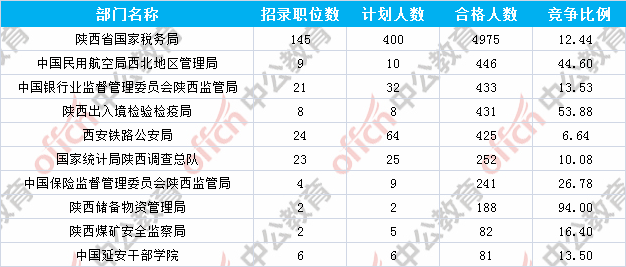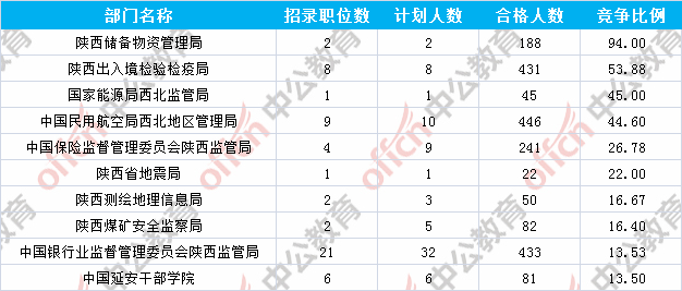 為幫助廣大考生更清晰的了解今日?qǐng)?bào)名情況,陜西中公網(wǎng)校整理了審核通過(guò)人數(shù)前十位的部門以及競(jìng)爭(zhēng)比例最激烈的十大部門,供廣大考生參考: