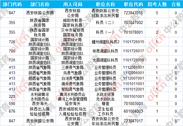 截止到20日8時(shí),工作地點(diǎn)在陜西的職位共有15個(gè)無人報(bào)考,占全部職位的5.32%。下面是無人報(bào)考職位一覽表,陜西中公教育專家建議廣大考生多關(guān)注一些較冷職位,避免激烈競爭,結(jié)合自身?xiàng)l件,找到屬于自己的職位。