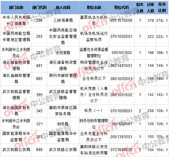截止到10月20日8時(shí),報(bào)名通過審核人數(shù)和競(jìng)爭(zhēng)比例的職位為三峽海事局基層執(zhí)法大隊(duì)科員一職,招錄1人,過審人數(shù)378人,競(jìng)爭(zhēng)比例為378:1。具體信息如下: