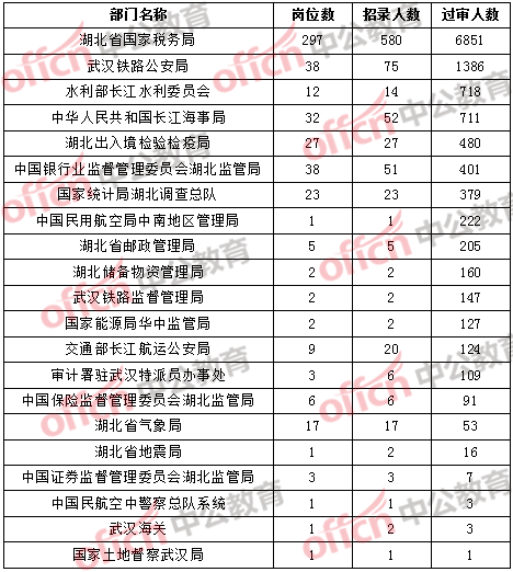 【截至20日8時(shí)】2017國(guó)考報(bào)名湖北12194人通過審核,56個(gè)職位無人通過審核