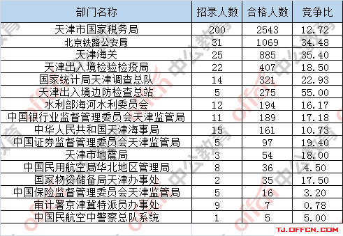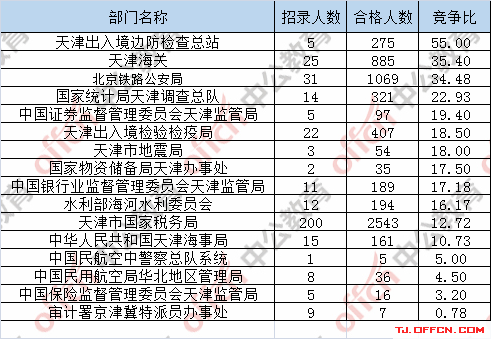為幫助廣大考生更清晰的了解今日報(bào)名情況,天津中公 網(wǎng)校整理了審核通過人數(shù)前五位的部門以及競爭比例最激烈的五大部門,供廣大考生參考: