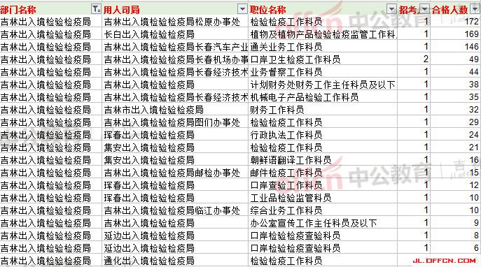 吉林出入境檢驗(yàn)檢疫局報(bào)名人數(shù)最多前20崗位