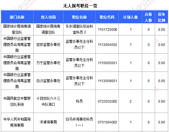 為幫助廣大考生更清晰的了解今日報(bào)名情況,海南中公網(wǎng)校整理今天各部門的報(bào)名情況供廣大考生參考: