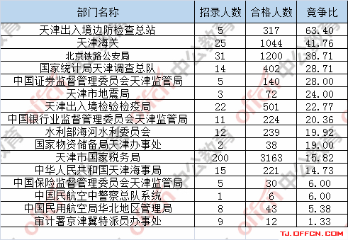 為幫助廣大考生更清晰的了解今日報(bào)名情況,天津中公網(wǎng)校整理了審核通過人數(shù)前五位的部門以及競爭比例最激烈的五大部門,供廣大考生參考: