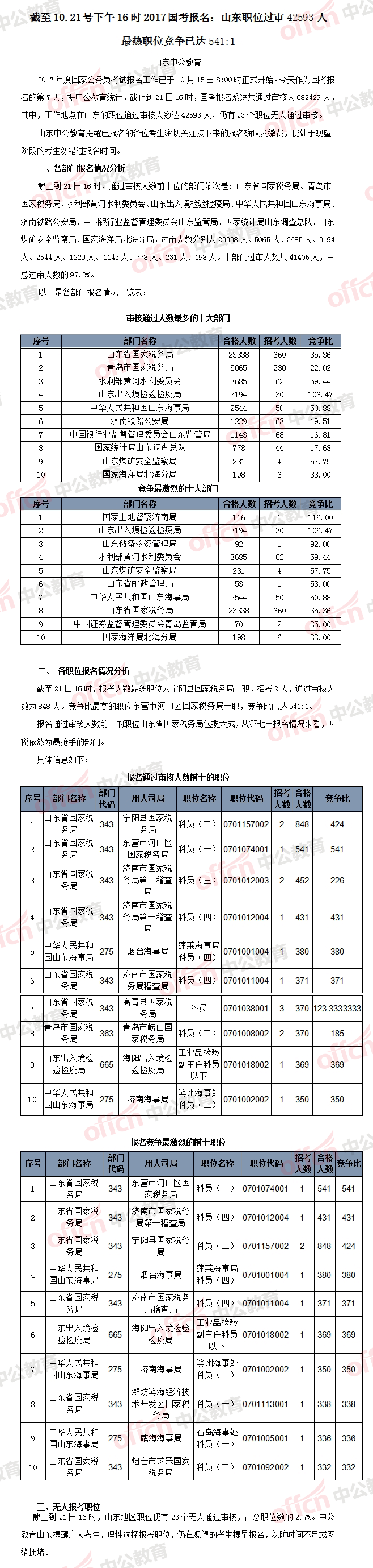 相關(guān)鏈接>>>2017國家公務(wù)員考試報(bào)名人數(shù)統(tǒng)計(jì)(山東地區(qū))【截至10月21日16時(shí)】