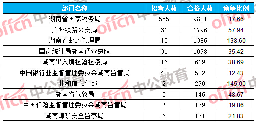 為幫助廣大考生更清晰的了解今日?qǐng)?bào)名情況,湖南中公網(wǎng)校整理了審核通過人數(shù)前十大部門以及競爭比例最激烈的十大部門,供廣大考生參考: