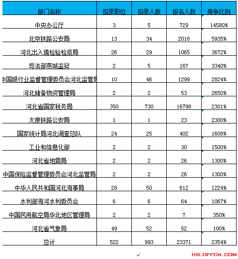 截止到22日8時,通過審核人數(shù)前三位的部門依次是:河北省國家稅務(wù)局、北京鐵路公安局、中國銀行業(yè)監(jiān)督管理委員會河北監(jiān)管局,三部門通過審核總?cè)藬?shù)達(dá)20115人,占通過審核總?cè)藬?shù)的86%。