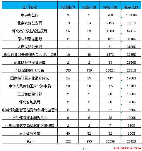 截止到22日16時,通過審核人數(shù)前三位的部門依次是:河北省國家稅務(wù)局、北京鐵路公安局、中國銀行業(yè)監(jiān)督管理委員會河北監(jiān)管局,三部門通過審核總?cè)藬?shù)達22452人,占通過審核總?cè)藬?shù)的86%。