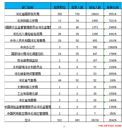 2017國考河北省地區(qū)所有職位報名情況下載表格查看: