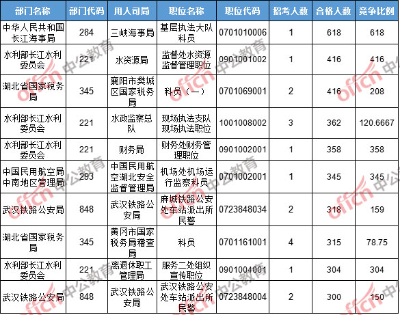 截止到22日16時(shí),競爭比例和報(bào)考人數(shù)最多的職位仍然為中華人民共和國長江海事局基層執(zhí)法大隊(duì)科員職位,招錄1人,截止到22日16時(shí)通過人數(shù)為618人!