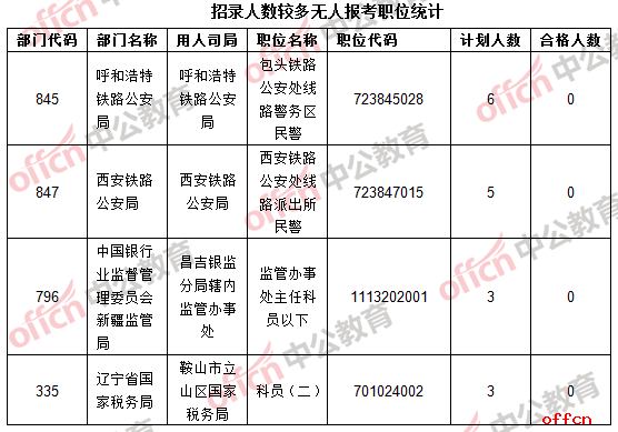 2017國(guó)考報(bào)名已經(jīng)進(jìn)入倒數(shù)第二天,中央黨群機(jī)關(guān)參照公務(wù)員法管理人民團(tuán)體和群眾團(tuán)體系統(tǒng)、中央黨群機(jī)關(guān)參照公務(wù)員法管理事業(yè)單位這兩個(gè)系統(tǒng)的所有職位已經(jīng)全部有人過(guò)審,報(bào)考率達(dá)100%。中央黨群機(jī)關(guān)以及中央國(guó)家行政機(jī)關(guān)(本級(jí))這兩個(gè)系統(tǒng)目前都僅剩1個(gè)職位無(wú)人報(bào)考,分別為國(guó)家外國(guó)專家局經(jīng)濟(jì)技術(shù)專家司項(xiàng)目處主任科員及以下(職位代碼407002001),中共中央對(duì)外聯(lián)絡(luò)部二局蒙古語(yǔ)翻譯(職位代碼102004002),希望符合條件的考生重點(diǎn)考慮以上兩個(gè)職位。