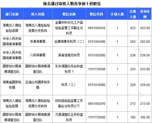 【截至24日8時】2017國考報名海南8269人過審 最熱職位423:1