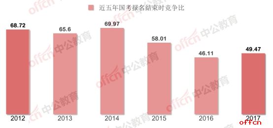 2017國(guó)考平均競(jìng)爭(zhēng)比接近50:1趕超去年,國(guó)考熱度依舊。