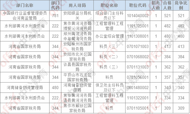 報名通過審核人數(shù)排名前列的職位主要集中在鄭州鐵路公安局、河南省國家稅務局,中國銀行業(yè)監(jiān)督管理委員會河南監(jiān)管局,具體信息如下:
