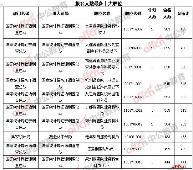 2017國考報(bào)名結(jié)束:統(tǒng)計(jì)局過審45491人 平均競爭比51:1