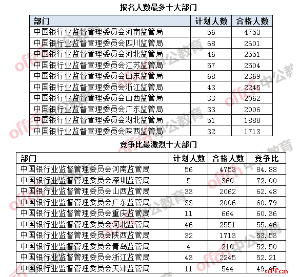 2017國考報名結(jié)束:銀監(jiān)會過審43066人 平均競爭比36.5:1