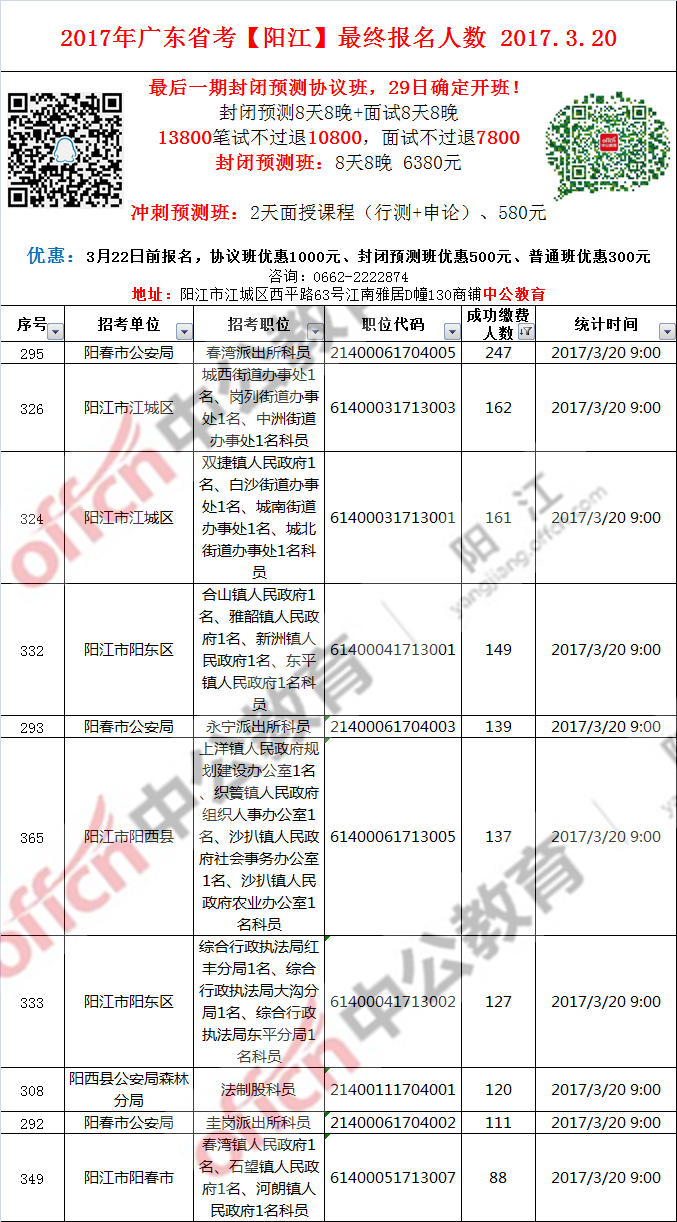 附件:2017廣東公務員考試(陽江考區(qū))職位報名人數(shù)統(tǒng)計(截止3月20日9時).xlsx