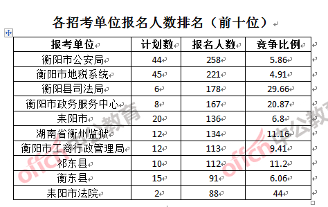 二、衡陽(yáng)公務(wù)員報(bào)名人數(shù):各招考單位分析