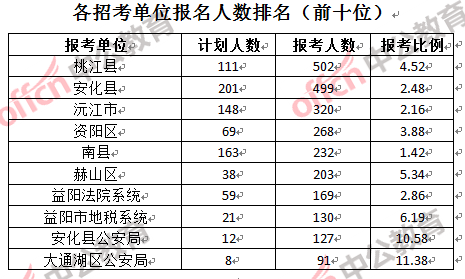 二、益陽(yáng)公務(wù)員報(bào)名人數(shù):各招考單位分析