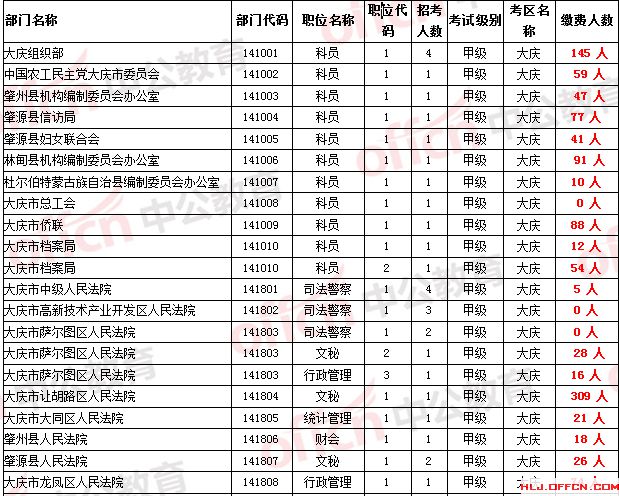 中公網(wǎng)校為參加2014年黑龍江省公務(wù)員考試大慶地區(qū)的考生整理截止至5月18日早9點(diǎn)的部分繳費(fèi)人數(shù),并且在更新中。。。由于報(bào)名網(wǎng)站報(bào)名情況每30分鐘統(tǒng)計(jì)一次,數(shù)據(jù)可能會(huì)有細(xì)微差異,所有數(shù)據(jù)僅供大家參考。