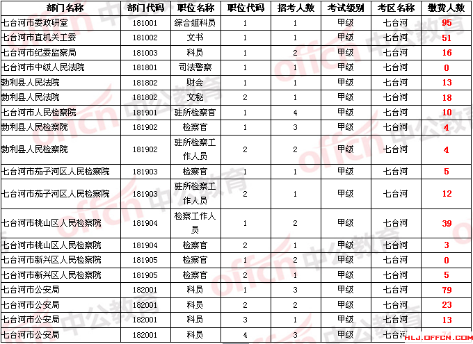 七臺河中公教育為參加2014年黑龍江省公務員考試的考生整理截止至5月19日晚17點的部分繳費人數(shù),并且在更新中。。。由于報名網(wǎng)站報名情況每30分鐘統(tǒng)計一次,數(shù)據(jù)可能會有細微差異,所有數(shù)據(jù)僅供大家參考。