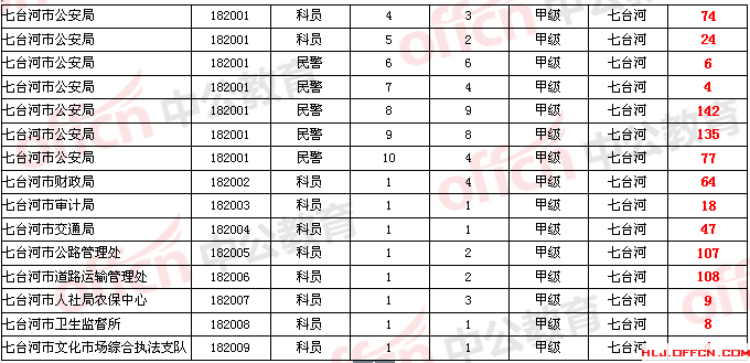 2014年黑龍江七臺河公務員考試繳費人數(shù)統(tǒng)計表(5月19日)