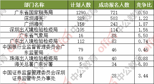為幫助廣大考生更清晰的了解今日報(bào)名情況,中公網(wǎng)校整理了審核通過人數(shù)前十位的部門以及競爭比例最激烈的十大部門,供廣大考生參考: