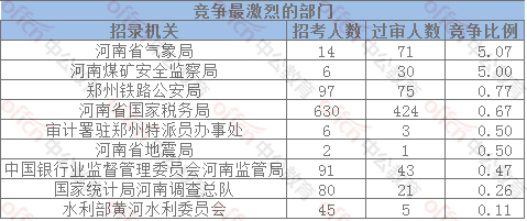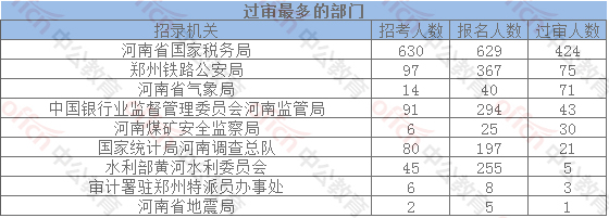 截止到30日18時,通過審核人數(shù)前三位的部門依次是:河南省國家稅務(wù)局、鄭州鐵路公安局、河南省氣象局,三部門通過審核總?cè)藬?shù)達(dá)570人,占通過審核總?cè)藬?shù)的84.69%。