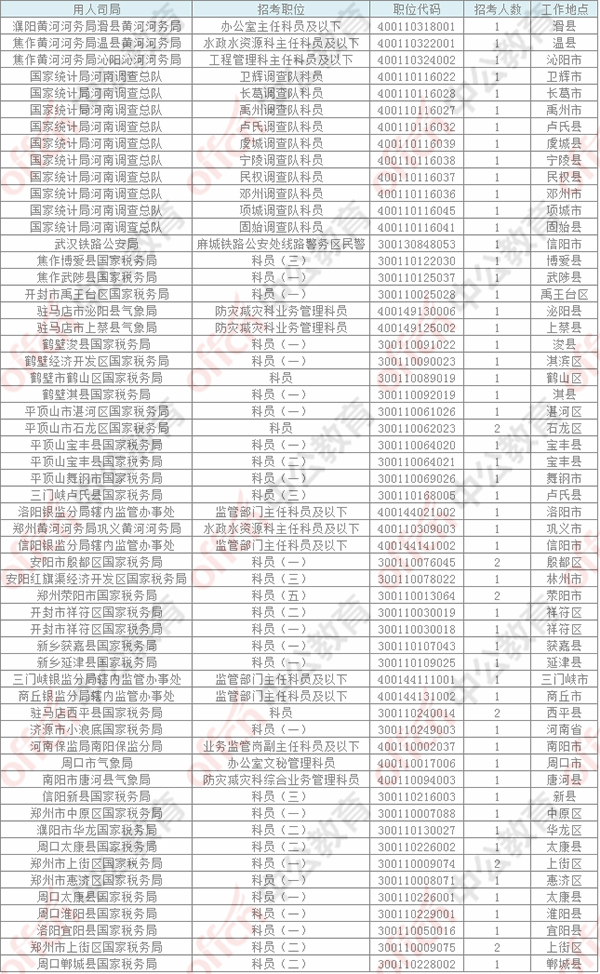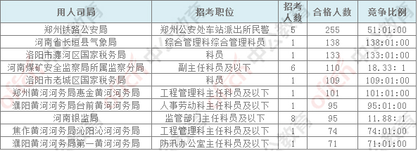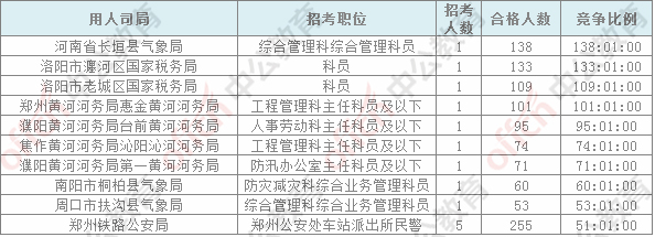 報(bào)名通過(guò)審核人數(shù)前十的職位主要集中在水利部黃河水利委員會(huì)、鄭州鐵路公安局、河南省氣象局、河南省國(guó)家稅務(wù)局,具體信息如下: