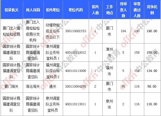 截止到2日9時(shí),工作地點(diǎn)在福建的職位共有26個(gè)無人報(bào)考,占全部職位的11.76%。中公網(wǎng)校專家建議廣大考生多關(guān)注一些較冷職位,避免激烈競(jìng)爭(zhēng),結(jié)合自身?xiàng)l件,找到屬于自己的職位。