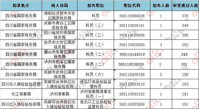第四日報名通過審核人數前十的職位主要集四川省國家稅務局等部門,具體信息如下: