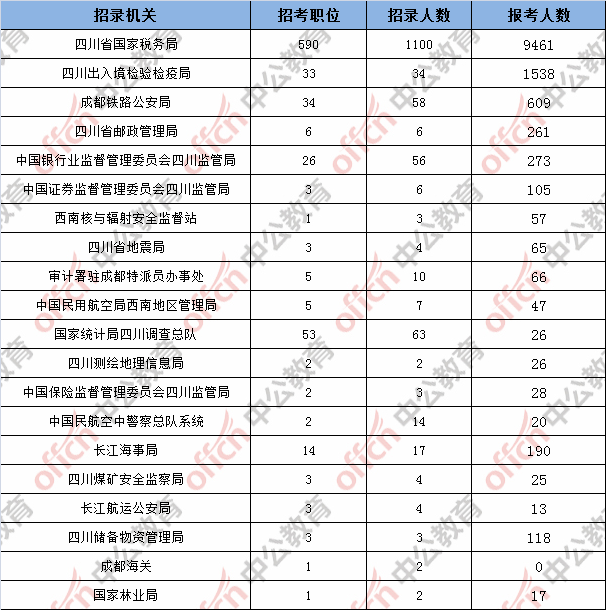 為幫助廣大考生更清晰的了解今日報名情況,四川中公教育整理了已審核通過人數的部門,此數據供廣大考生參考: