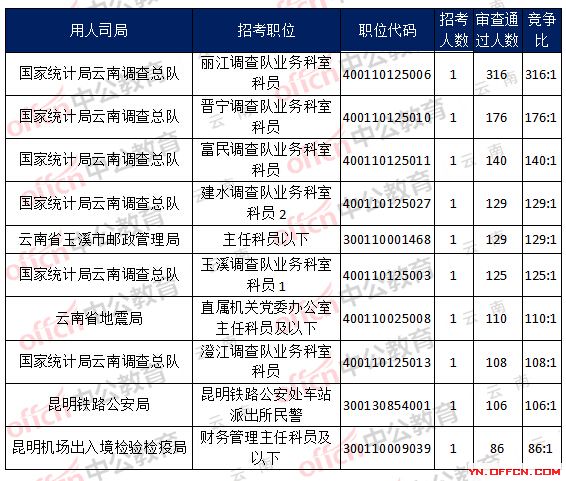 截止11月2日16時,國考報名第三天,國家統(tǒng)計局云南調(diào)查總隊,麗江調(diào)查隊業(yè)務科室科員,職位代碼:400110125006,招錄1人,審查通過人數(shù)為316人,具體信息如下: