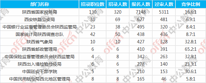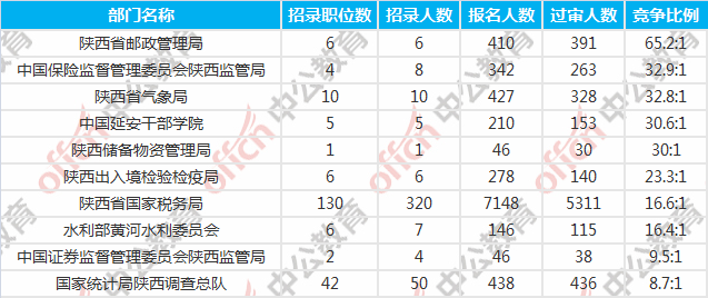 截至到3日9時,通過審核人數(shù)前三位的部門依次是:陜西省國家稅務(wù)局、西安鐵路公安局、中國銀行業(yè)監(jiān)督管理委員會陜西監(jiān)管局,三部門通過審核總?cè)藬?shù)達6112人,占通過審核總?cè)藬?shù)的75.1%。