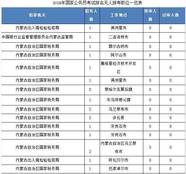 2018國考報(bào)名人數(shù)分析:內(nèi)蒙古10257人過審 最熱職位245:1【11月2日16時(shí)】