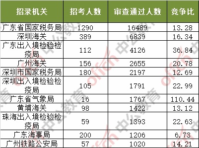 截止到3日16時(shí),通過(guò)審核人數(shù)前三位的部門(mén)依次是:廣東省國(guó)家稅務(wù)局、深圳海關(guān)、廣東出入境檢驗(yàn)檢疫局,三部門(mén)通過(guò)審核總?cè)藬?shù)達(dá)27454人,占通過(guò)審核總?cè)藬?shù)的61.2%。