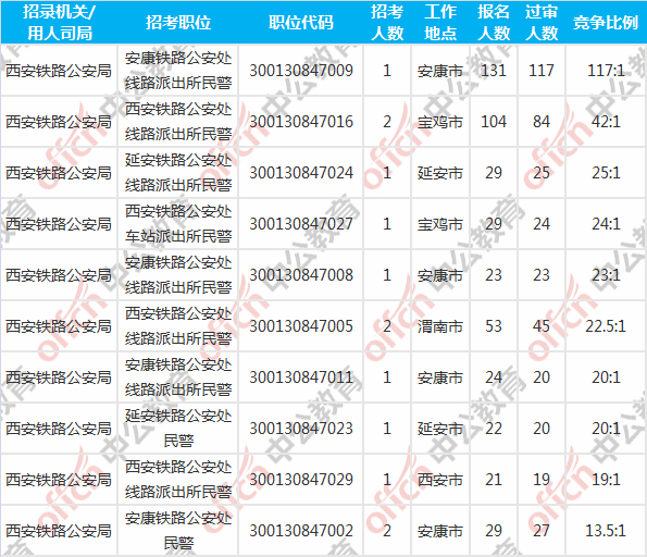 鐵路公安競爭最激烈的十大職位