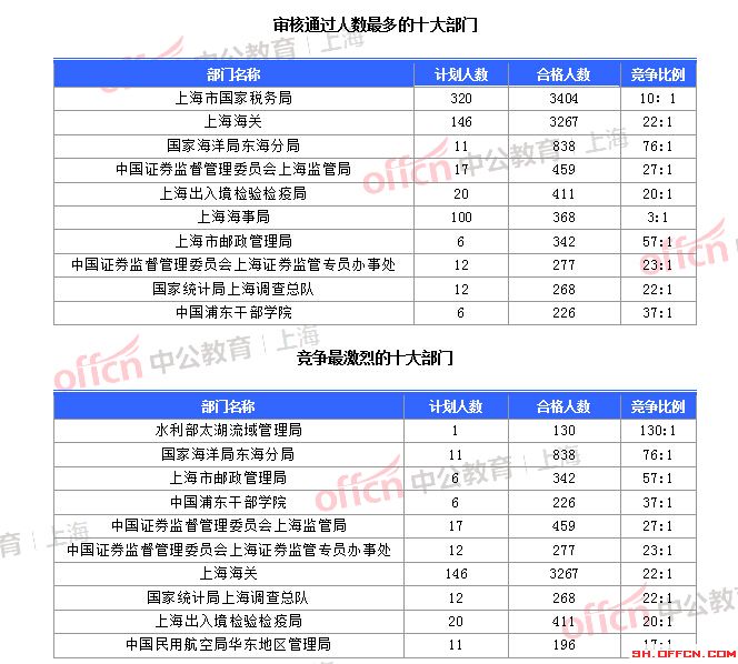 截止到4日9時(shí),通過審核人數(shù)前三位的部門依次是:上海市國家稅務(wù)局、上海海關(guān)、國家海洋局東海分局,三部門通過審核總?cè)藬?shù)達(dá)7509人,占通過審核總?cè)藬?shù)的71.26%。